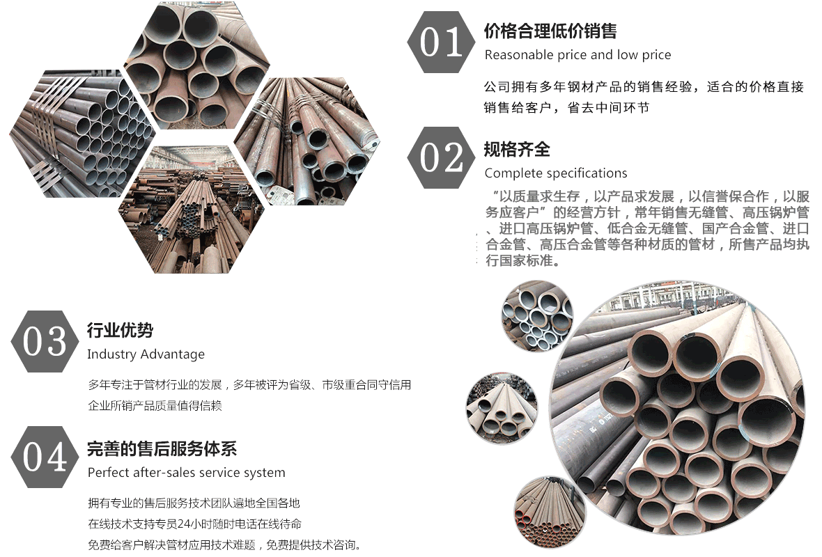 合肥榮茂物資有限公司主營(yíng)無(wú)縫鋼管,鍍鋅螺旋鋼管,鍍鋅無(wú)縫鋼管,精密鋼管,不銹鋼管,45#厚壁無(wú)縫鋼管 ,電力用無(wú)縫管,管道用無(wú)縫鋼管。規(guī)格有:5mm*1mm—1020mm*200mm合金鋼管、外徑38mm-127mm冷軋無(wú)縫鋼管、外徑127mm-377mm,壁厚16mm-100mm,外徑精度±0.5%,壁厚精度±5%熱軋中厚壁無(wú)縫鋼管、16Mn外徑400—1600mm、壁厚20—60mm的大口徑厚壁卷管,可定尺到16米及各種規(guī)格的無(wú)縫方管、異型無(wú)縫鋼管等.常備鋼管種類(lèi)有:大口徑無(wú)縫管,厚壁無(wú)縫管,精密無(wú)縫管,結(jié)構(gòu)用無(wú)縫鋼管、流體用無(wú)縫鋼管、液壓無(wú)縫鋼管、電力用無(wú)縫管、管道用無(wú)縫鋼管、石油輸送用無(wú)縫鋼管、化肥設(shè)備用無(wú)縫鋼管、煤礦用無(wú)縫鋼管、不銹鋼無(wú)縫鋼管、化工用無(wú)縫鋼管、紡織機(jī)械用無(wú)縫鋼管、汽車(chē)、水利用無(wú)縫鋼管,精密無(wú)縫鋼管、光亮無(wú)縫鋼管、醫(yī)療用無(wú)縫鋼管、支柱用無(wú)縫鋼管、合金無(wú)縫管、高壓無(wú)縫管、大口徑直縫焊管等。適用于工程、煤礦 、紡織、電力、鍋爐、機(jī)械、等各個(gè)領(lǐng)域。公司以良好的信譽(yù)、優(yōu)秀的產(chǎn)品、雄厚的實(shí)力、低廉的價(jià)格遍地全國(guó)30多個(gè)省、市、自治區(qū)、直轄市及國(guó)外,產(chǎn)品深得用戶(hù)依賴(lài)...點(diǎn)擊了解更多